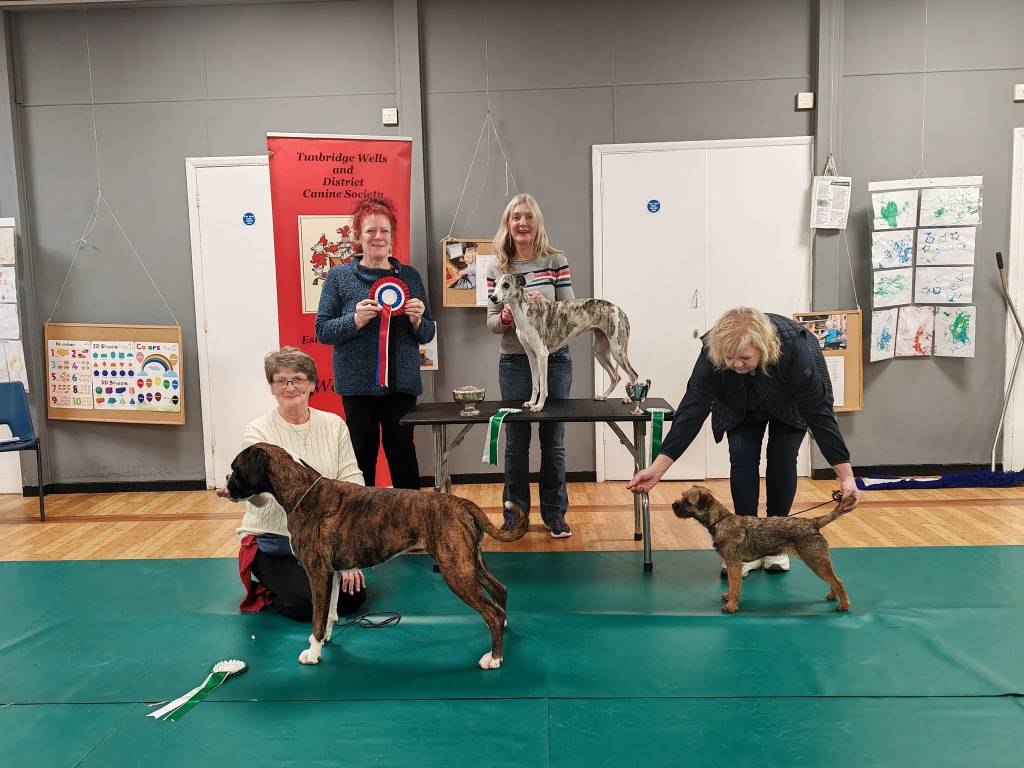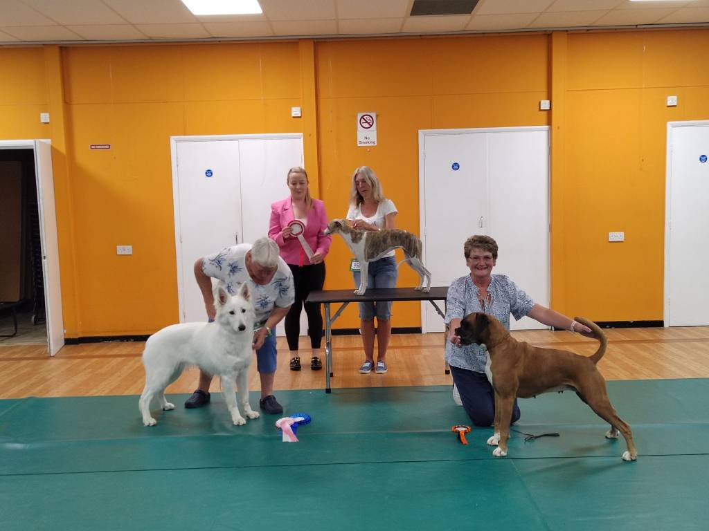Best Veteran was Elly Bass ‘s Whippet, Daisy and Best Adult was Jackie Pearn ‘s Boxer, Bonnie.