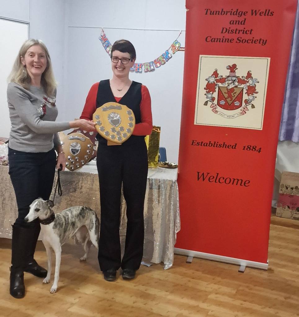 BEST IN MATCH and BEST VETERAN IN MATCH – Elly Bass and her evergreen Whippet, Daisy